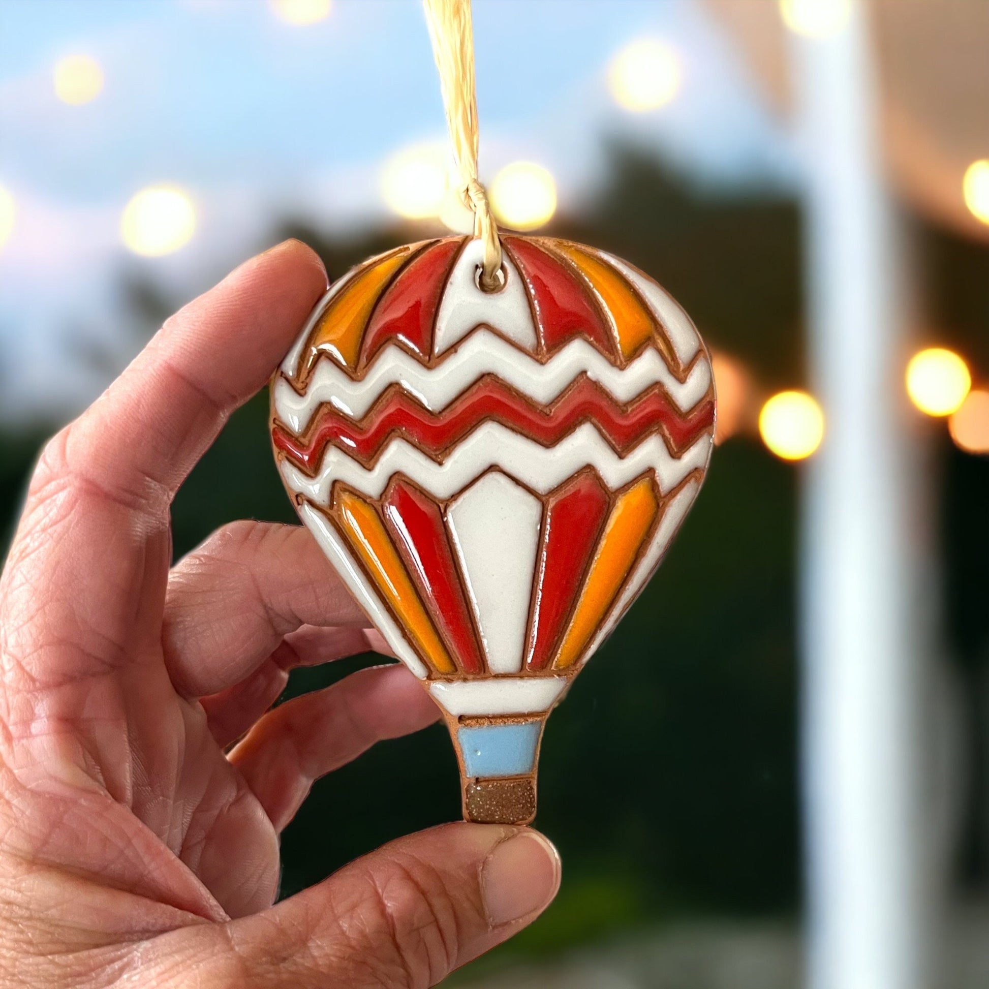 Zig Zag Reds and Orange Hot Air Balloon Ornament